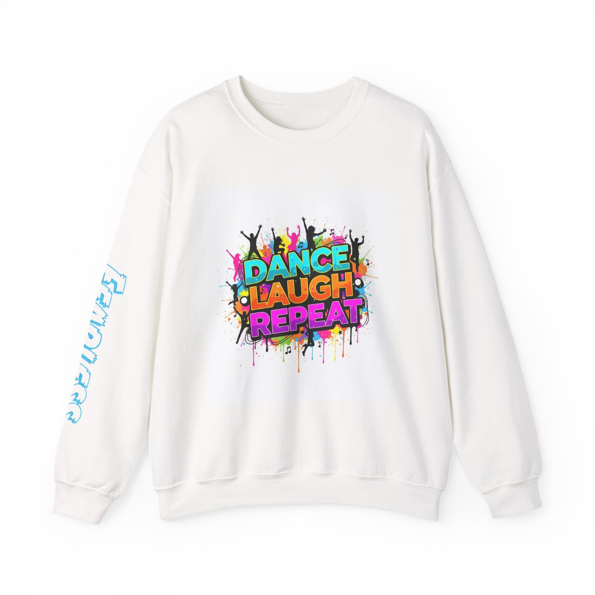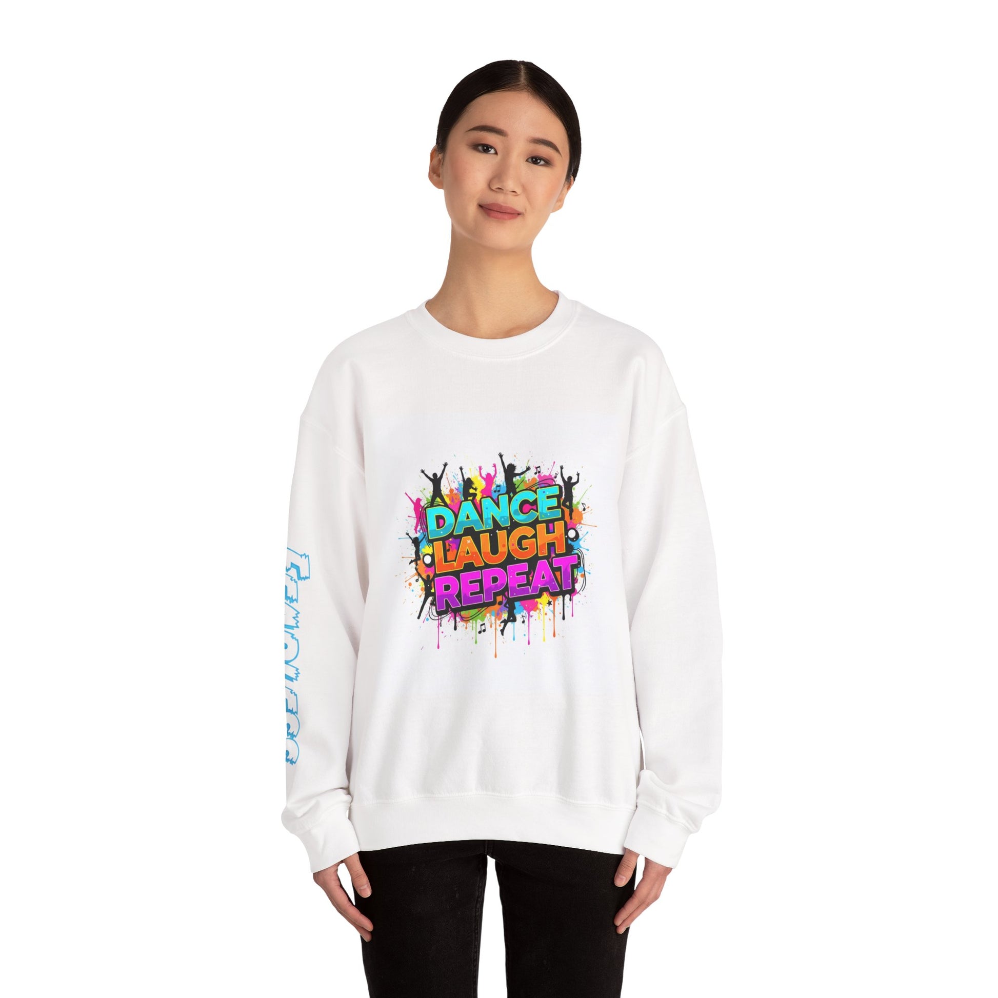 Colorful Dance Laugh Repeat Sweatshirt, Cozy Gift for Dancers, Fun Unisex Pullover, Perfect for Parties & Celebrations, Trendy Casual Wear