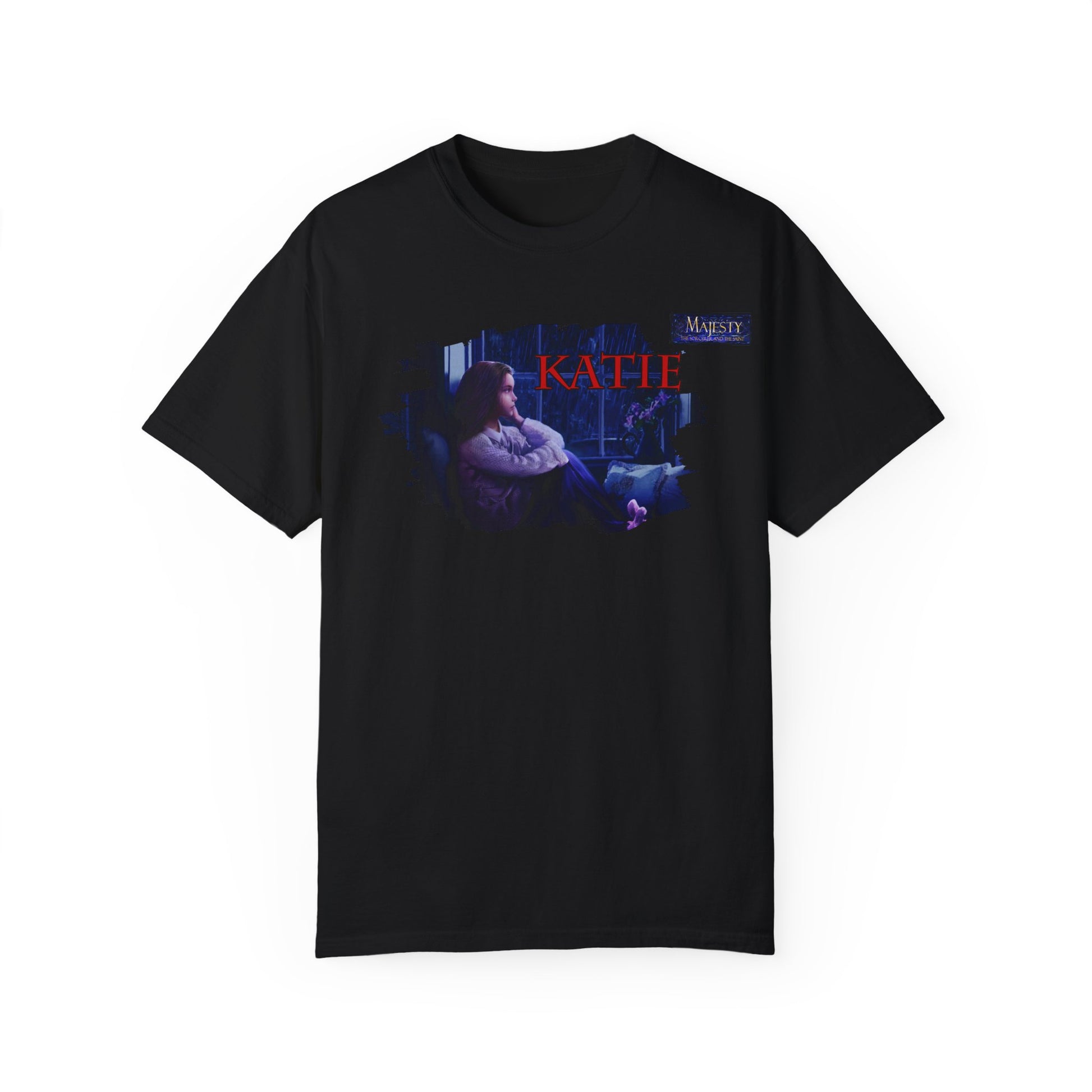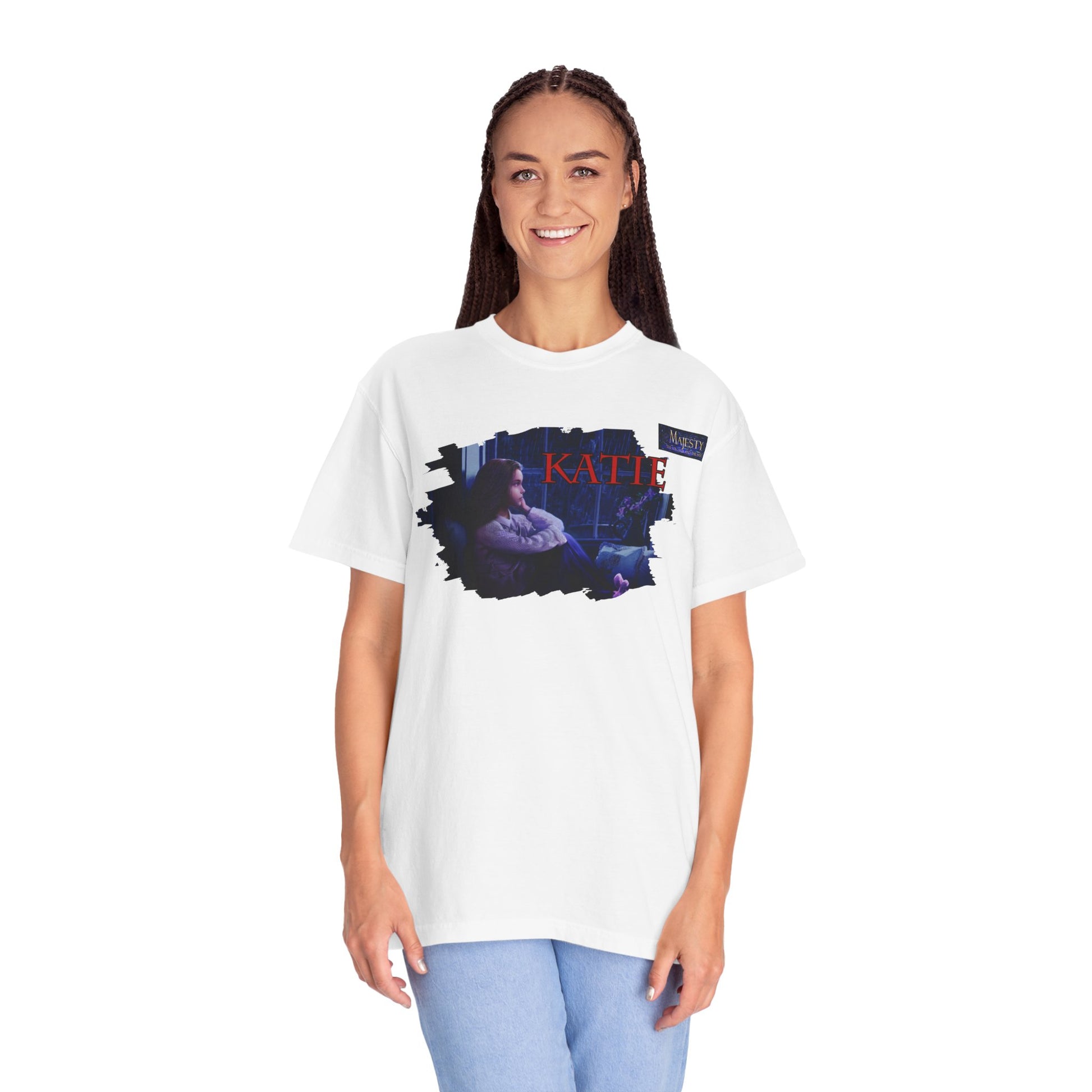 Majesty's Kate Graphic Design T-Shirt - This unisex garment-dyed T-shirt offers a relaxed fit and classic crew neckline, making it perfect for casual or semi-formal settings. Made with high-quality, pre-shrunk US cotton, it provides long-lasting comfort and size retention. Ideal for adults, this T-shirt is available in multiple sizes and 58 colors, making it a versatile and stylish option for any wardrobe.
